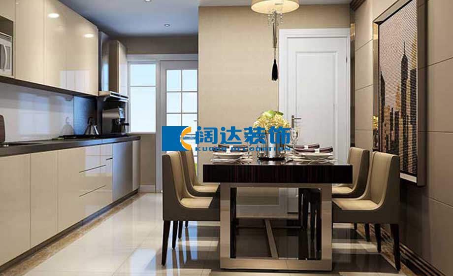 餐廳區域:餐廳和廚房合為一體,變成了開放式廚房,這也是此區域的亮點,主要功能和生活舒適度增加了不少,給兒童活動增加了空間。