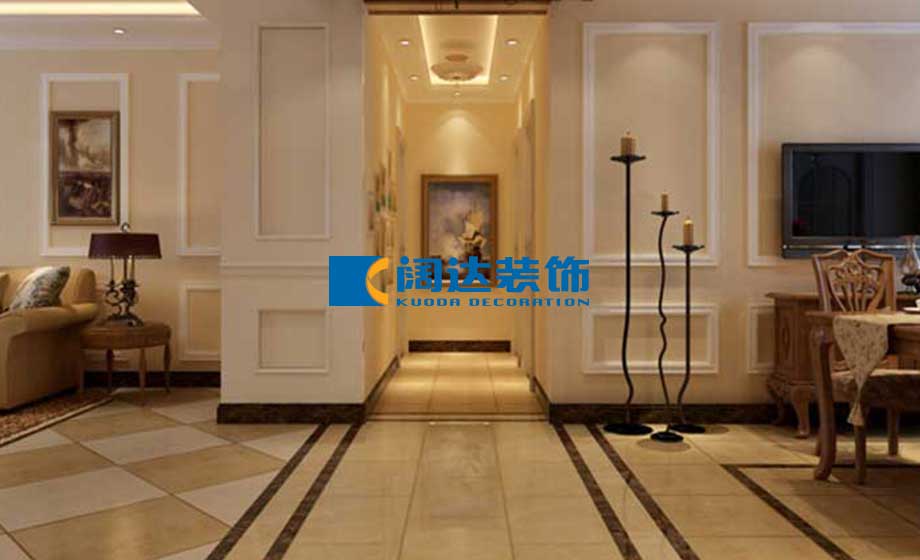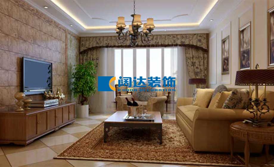本案的風(fēng)格為輕美式,裝修的特點(diǎn)是簡(jiǎn)潔實(shí)用,色彩是明亮環(huán)保,是非常典型的“輕裝修、重裝飾”的風(fēng)格。案例中的美式家具最迷人之處還在于造型、紋路、雕飾和色調(diào)細(xì)膩高貴。客廳:客廳的電視背景墻與沙發(fā)背景墻形成對(duì)比,不會(huì)顯得枯燥死板,顏色上輕重搭配,使整個(gè)空間更有層次感。