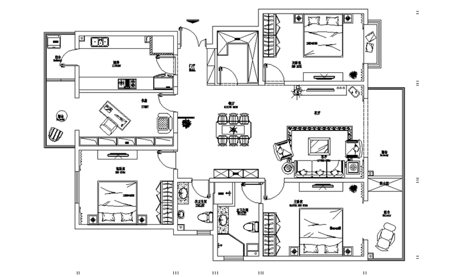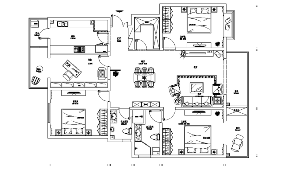 廚房:廚房空間較大,所以將櫥柜操作臺的空間設(shè)置的比較完善,將家用廚房電器修進行了合理的規(guī)劃。