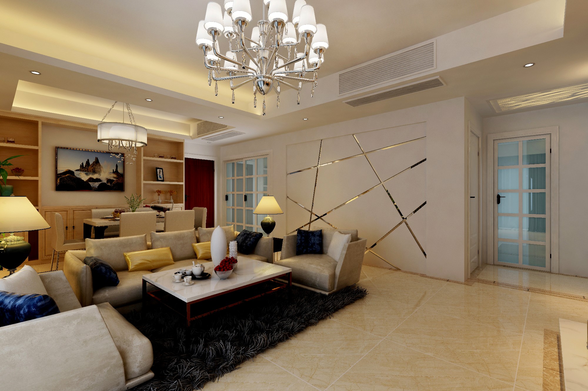 本案例采用現(xiàn)代簡約風(fēng)格裝修,業(yè)主是一對年輕小夫妻,還有一個(gè)乖巧的小女孩,常住人口為三人,父母偶爾過來幫忙帶下小孩。比較喜歡年輕活躍的生活節(jié)奏,采用現(xiàn)代風(fēng)格元素,打造一個(gè)溫馨的居住環(huán)境。客餐廳一體的表現(xiàn)方式,把整個(gè)空間的通透靈活的展現(xiàn)出來。