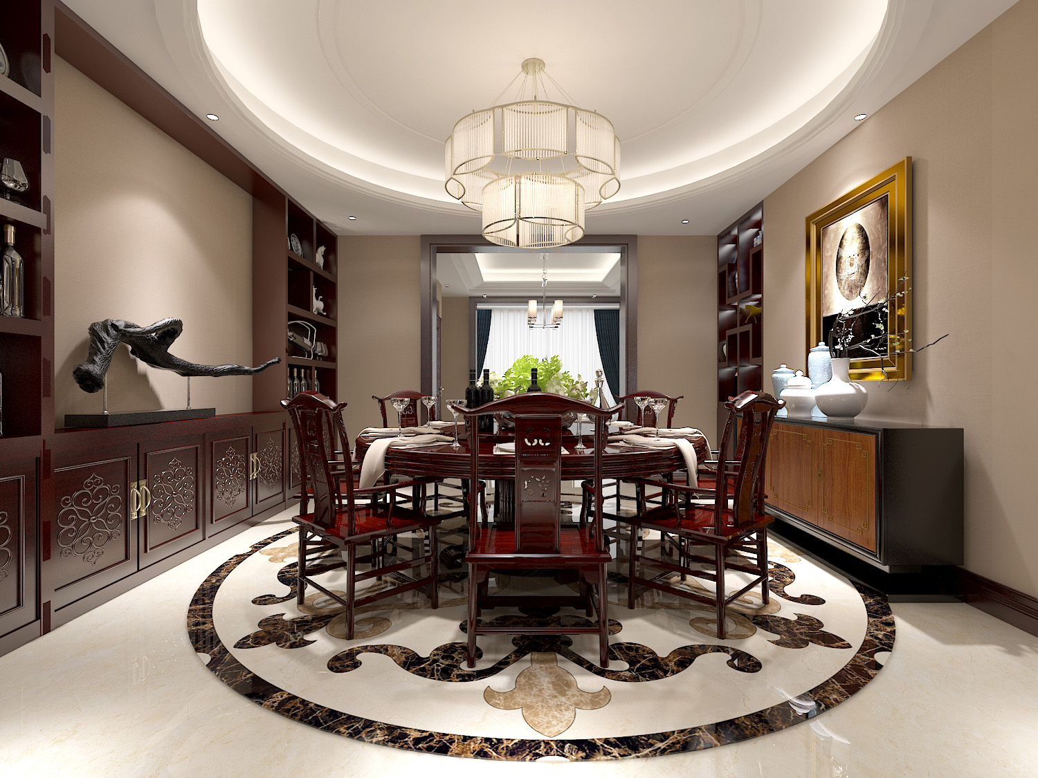 本案中的360平米的三居室整體采用了新中式風格裝修,新中式風格的設計不拘泥于傳統的中式元素,而是在繼承古典的基礎上融入現代的特色,將兩者有機地統一起來,作品表達出現代人對于中式風格低調沉穩的精神境界的追求。