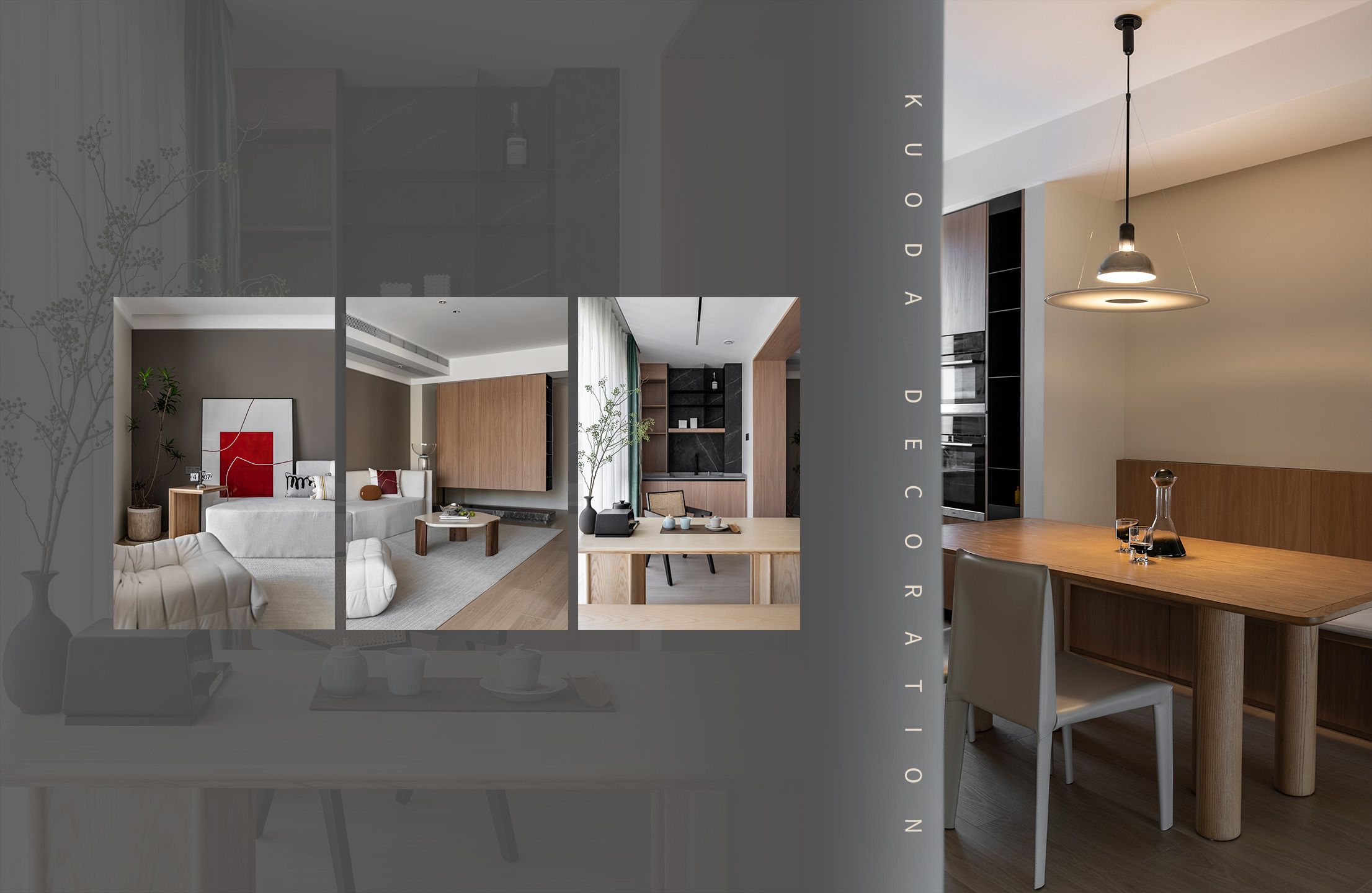 整體硬裝木飾面材質統一,在軟裝上配合時尚的家具單品,體現悠然自得的生活境界,從而達到業主最初向往的世外桃源。