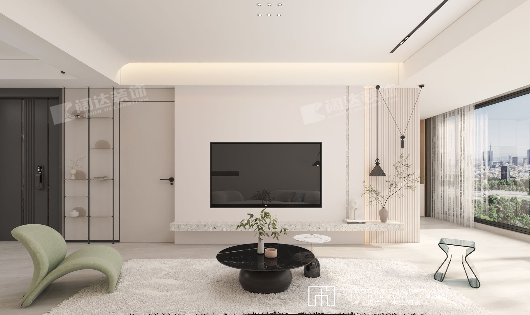 以淡奶油色為基調,大量的圓弧曲線在室內以不同的方式進行呈現,既隔斷了空間,處理了頂上的大梁,又能在造型上展現不一樣的美。搭配簡單的線條畫,給人簡單高級的感覺。