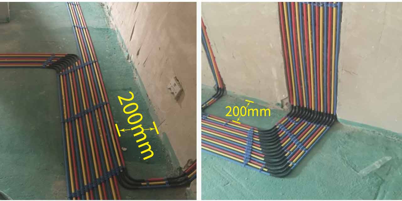 單管單線(xiàn)施工工藝地面配管必須使用10(mm)PVC阻燃線(xiàn)管(公司專(zhuān)利材料),并距墻體200mm間距沿墻敷設(shè),多根管敷設(shè)時(shí),必須并行、整齊排列,盡量減少管線(xiàn)的交叉和重疊。